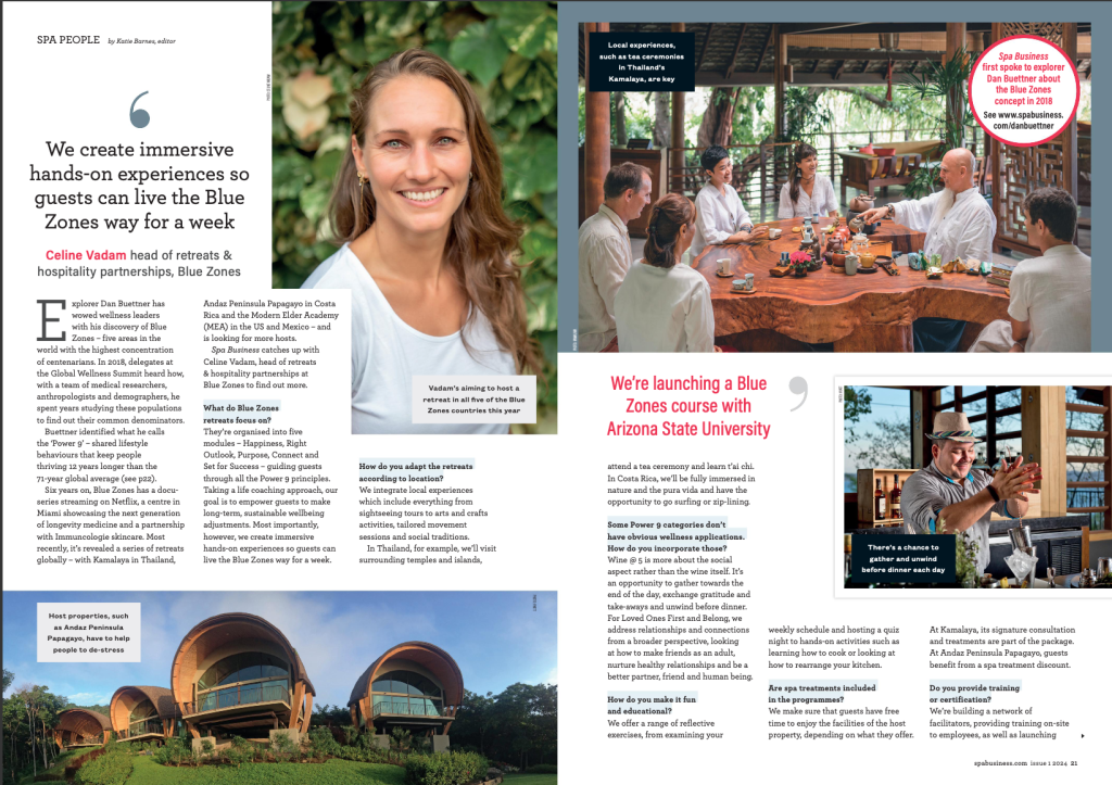 Brace yourselves for the latest insights and innovations in the world of spa and wellness with the BRAND NEW issue of Spa Business magazine. Join Celine Vadam as she introduces Blue Zones retreats to the world stage, spreading the message of longevity and vitality.